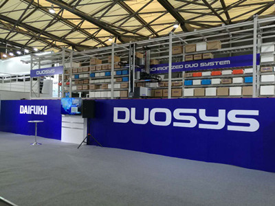本次展會上,眾多新產品吸引了觀眾的注意力。其中KIVAAGV系統、機器人自動揀選系統、貨到人揀選系統以及密集存儲系統等成為展出的重點。大福公司展出的快速雙車miniload系統尤其引人注目,兩臺高速miniload在一個巷道內同時作業,設計大膽,引人入勝。大福以此向世人證明其不愧為全球頂級的物流系統集成商和物流設備制造商。