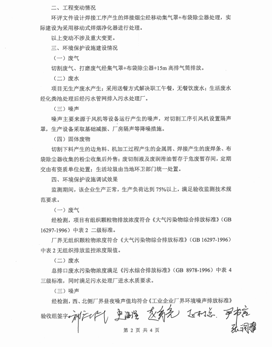 受河北京格輸送設備制造有限公司的委托,河北華清環境科技股份有限公司根據環評、環評批復并結合現場實際制定了監測方案,于2018年4月19日~4月20日、2018年5月17日~5月18日對其廢氣、廢水、廠界噪聲進行了環保驗收檢測,依據檢測結果,河北京格輸送設備制造有限公司按照《建設項目竣工驗收環境保護驗收技術指南 污染影響類》于2018年5月編制完成了項目竣工環保驗收監測報告。