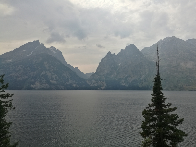 位于山下的杰克遜湖(JACKSON LAKE)匯集了蛇河雪水,湖面長度達到26公里,最寬處也有數公里,深度達131米,湖面如鏡,與雪山相映成趣,是難得的奇景。為了抬高湖水水面,在蛇河流出處建了一座水壩,每天定時放水,也成為一處景觀。