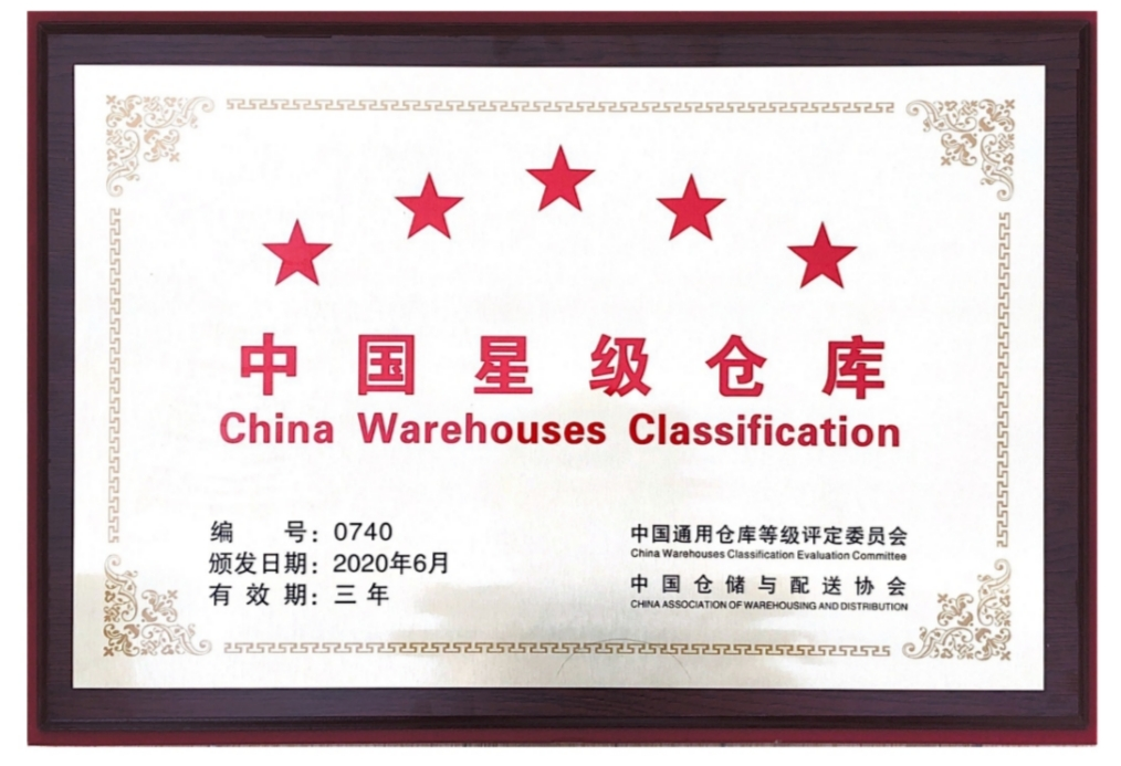 “中國星級倉庫”由中國通用倉庫等級評定委員會、中國倉儲與配送協(xié)會的專家共同評定。按照國家標(biāo)準(zhǔn)《通用倉庫等級》(GB/T21072),從倉庫規(guī)模、設(shè)施設(shè)備、信息智能化程度、從業(yè)人員素質(zhì)、服務(wù)功能、管理水平等幾個方面對不同等級的倉庫劃分為一星至五星共計五個等級,“五星”為最高等級。