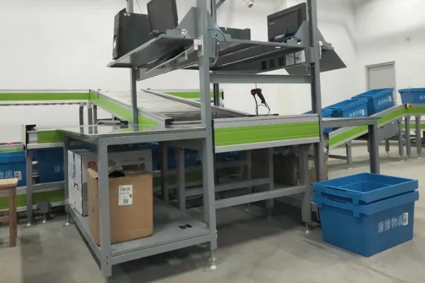 用于拆零后的復(fù)核與包裝。共設(shè)計(jì)18組包裝臺(預(yù)留4組)。采用伍強(qiáng)科技為醫(yī)藥物流中專門設(shè)計(jì)的一體化包裝復(fù)核工作站。