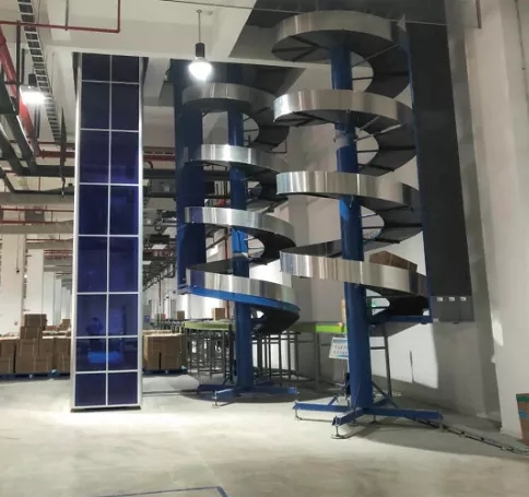 螺旋提升機(jī)被認(rèn)為是最緊湊的提升機(jī)設(shè)備之一,且技術(shù)成熟,故障率低,運(yùn)行平穩(wěn)。尤其是其輸送量大,每小時(shí)可以完成1500件以上的貨物輸送,解決了其它類型提升機(jī)跨樓層運(yùn)輸能力不足的問題。在伍強(qiáng)智能科技的案例中,也有10年以上的應(yīng)用。本配送中心項(xiàng)目充分利用螺旋提升機(jī)的特點(diǎn),完成整件貨物和打包后的貨物從2~4樓到達(dá)一樓的快速輸送,成為項(xiàng)目的亮點(diǎn)之一。