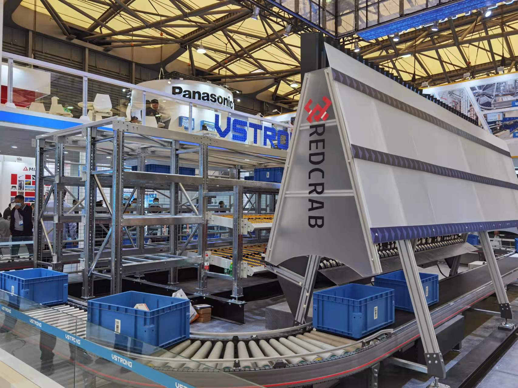 伍強展出的紅蟹全自動智能拆零系統(tǒng)解決方案,可解決困擾電商多年的多件訂單的自動無人揀選難題。展品包括紅蟹穿梭車機器人、A架全自動節(jié)選系統(tǒng)、輸送系統(tǒng)及相關(guān)軟件等。