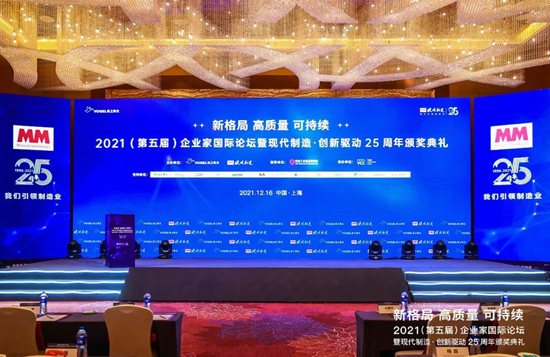2021年12月16日,2021(第五屆)企業家國際論壇暨現代制造·創新驅動25周年頒獎典禮在上海成功召開。