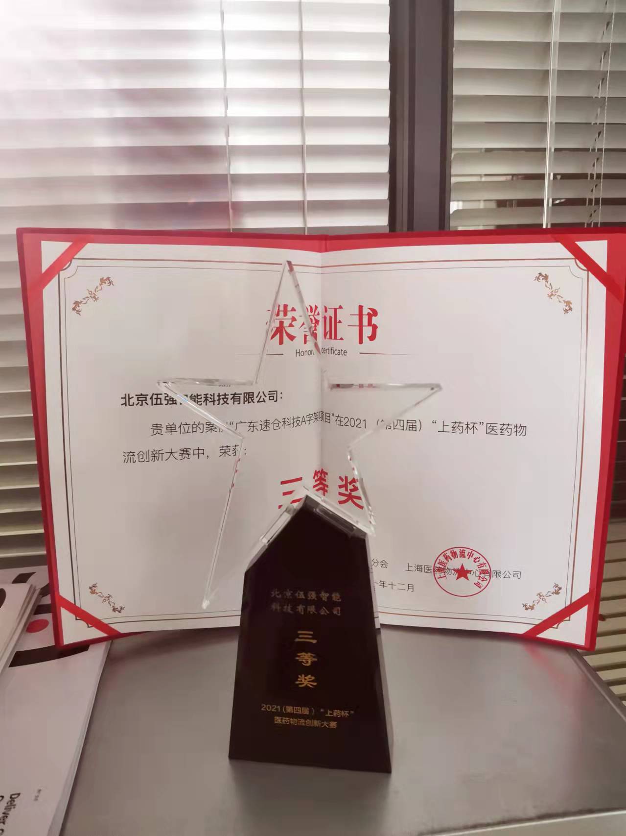 在晚宴進行的頒獎典禮上,伍強智能科技和廣東速倉科技有限公司聯合申報的廣東速倉科技A字架項目,在2021(第四屆)“上藥杯”醫藥物流創新大賽中榮獲“三等獎”。這也是伍強首次參與本次獎項申報,榮獲三等獎給予我們很大的信心,今后伍強會再接再勵。廣東速倉科技A字架項目是由伍強智能科技承建并于2020年正式上線,該項目不僅在原有基礎上提高對應的揀選效率,而且極大滿足了速倉科技對醫藥電商B2C業務及門店配送等業務發展的需求。同時,這是我司新型自主研發的一種實用新型A字分揀機在項目上的首次應用。