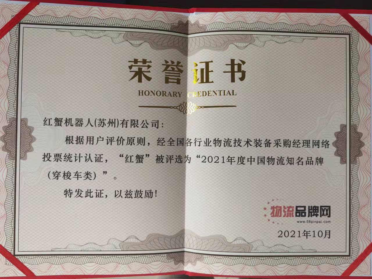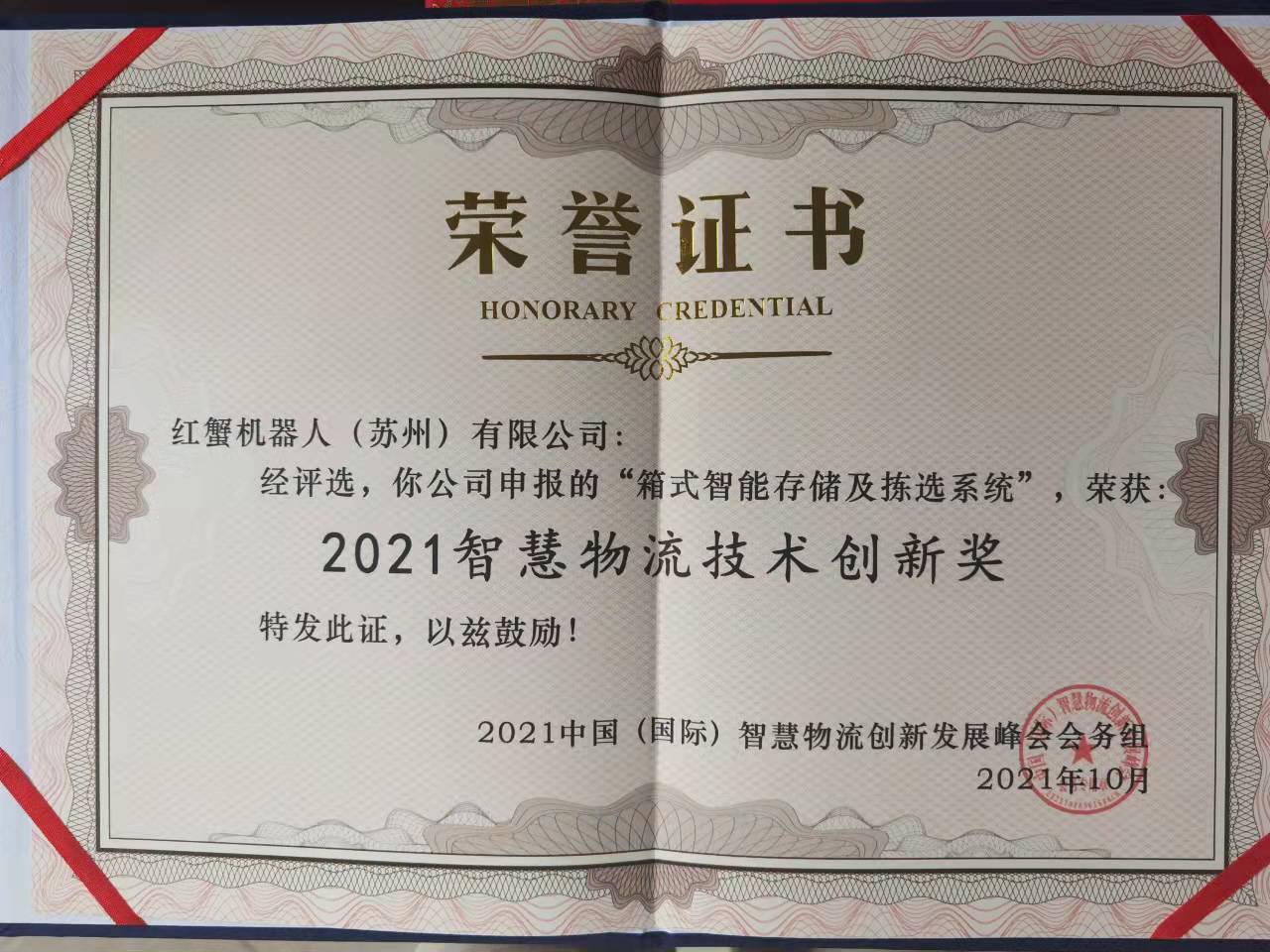 紅蟹憑借優秀的創新技術獲得“2021智慧物流技術創新獎”和“2021中國物流名牌獎”。